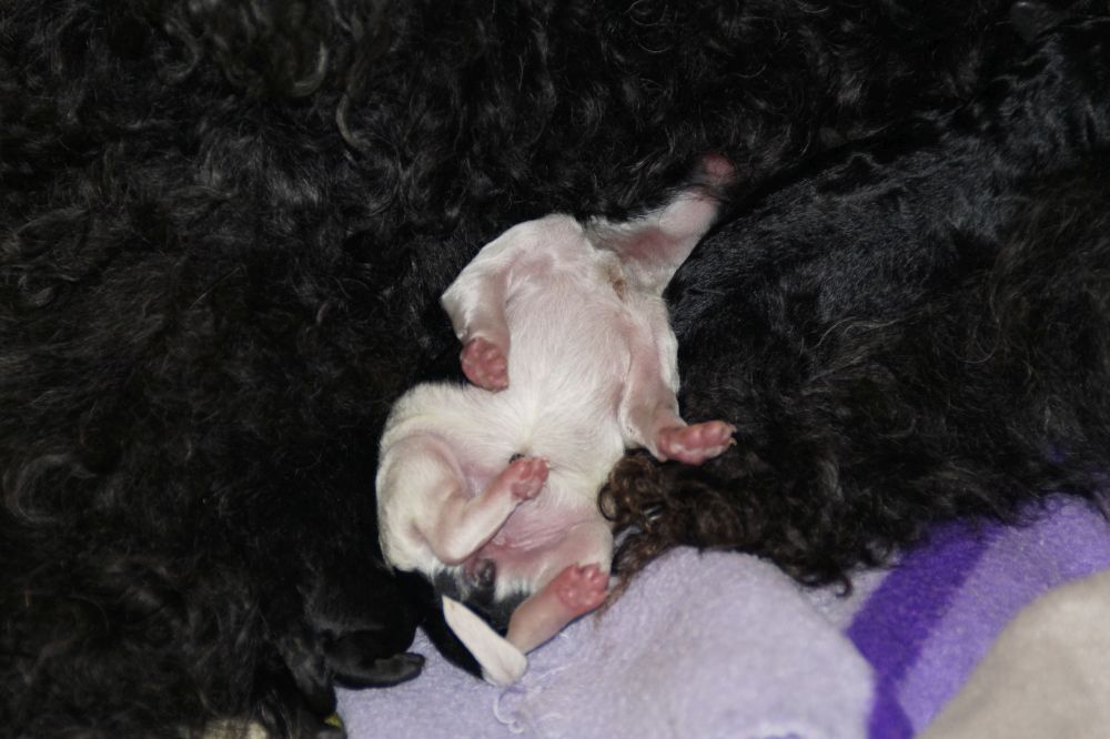 zu Hause, die Welpen um uns herum. Sie wurden von uns nicht anders behandelt als an anderen Tagen. Wie auch bei den anderen Würfen, die wir um den Jahreswechsel hatten, gab es keine