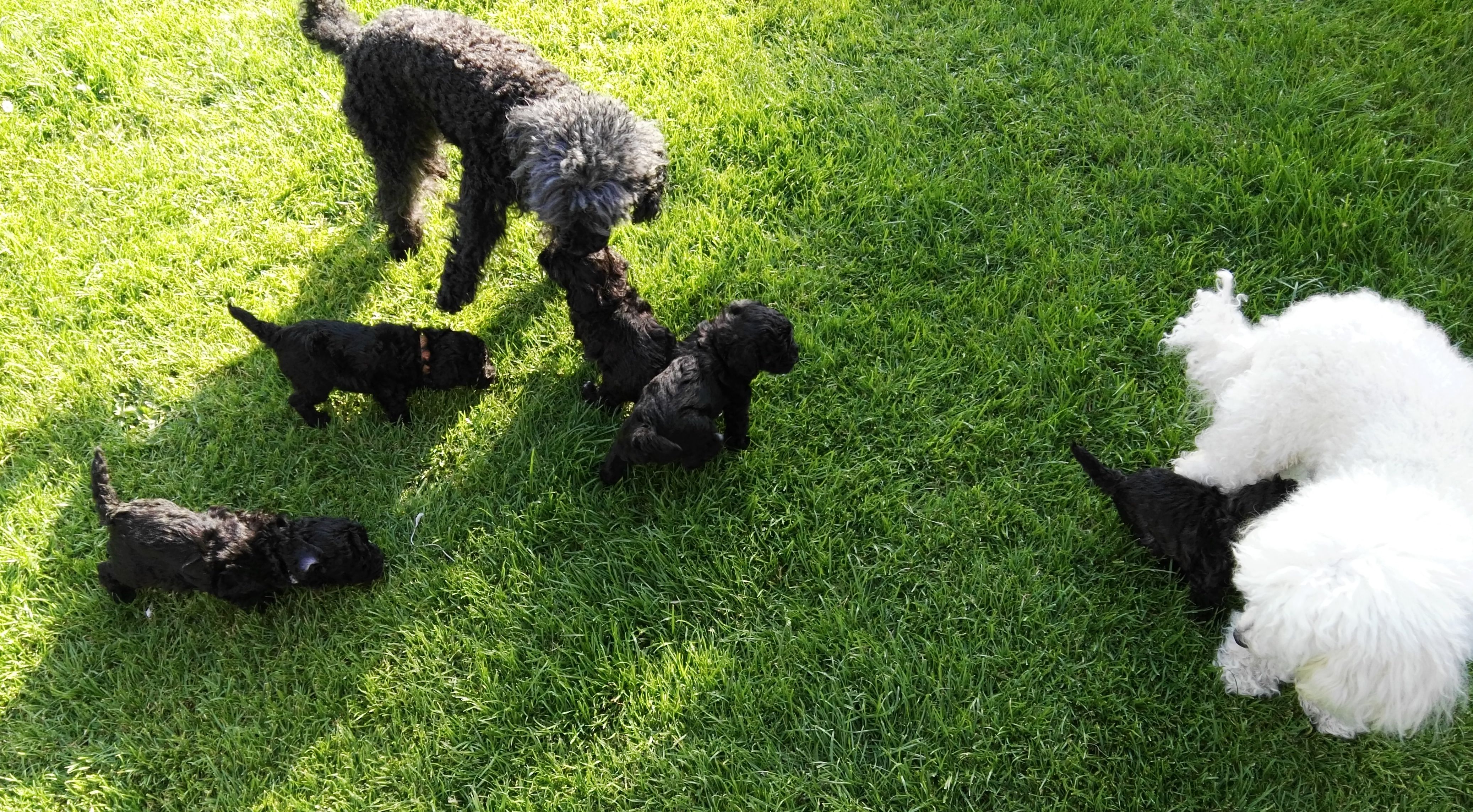 Nun endlich wieder ein paar Infos zu den Welpen. Alle 5 haben sich zu selbstbewussten kleinen Hündinnen entwickelt. Sie sind sehr aufgeweckt und neugierig, erkunden jeden Tag etwas